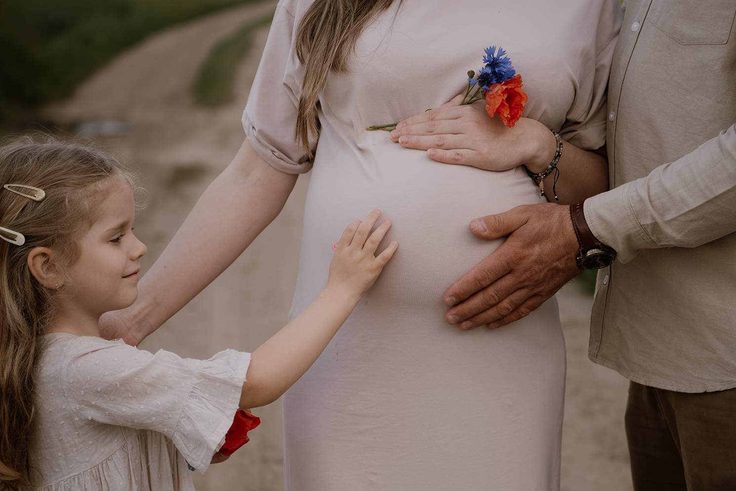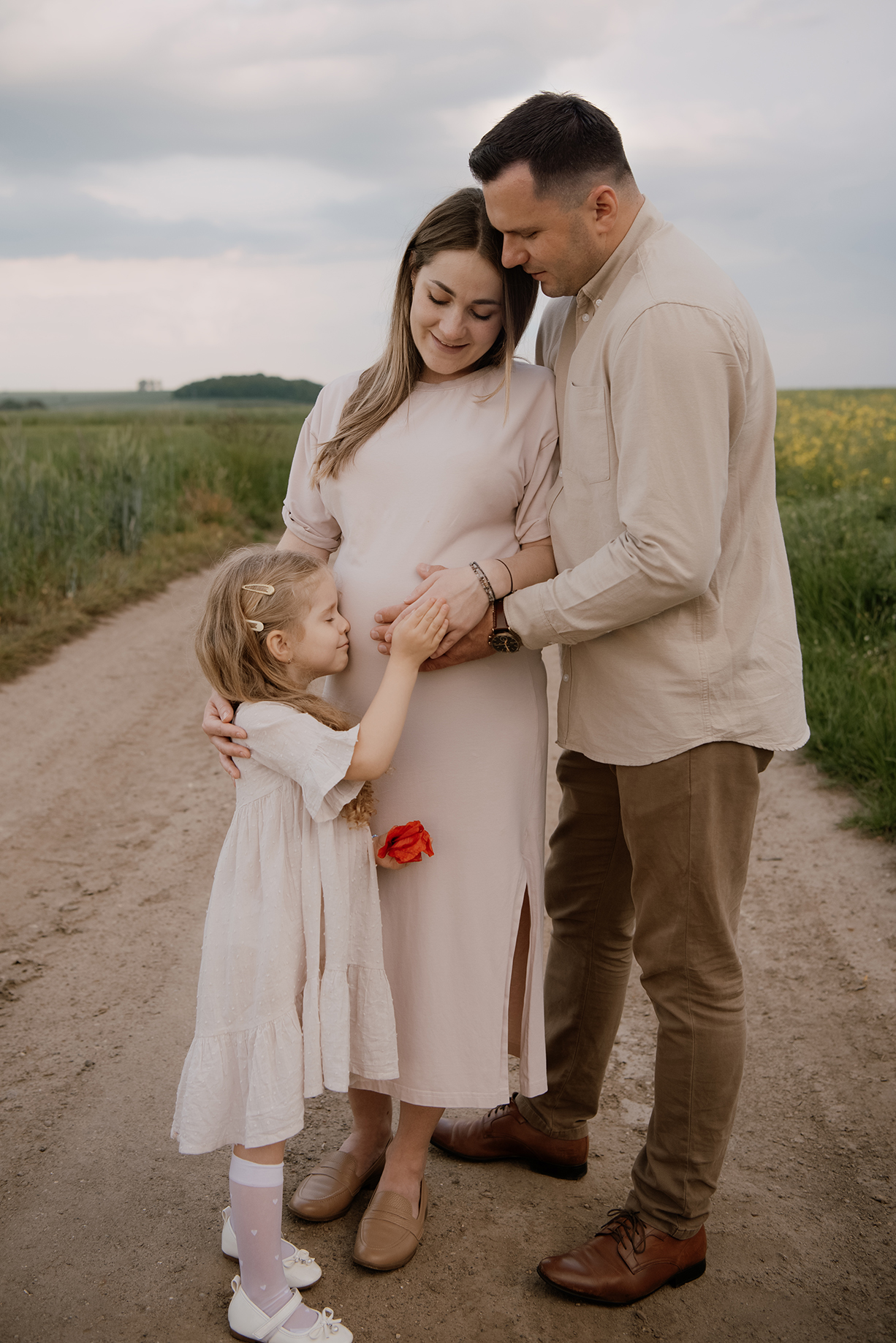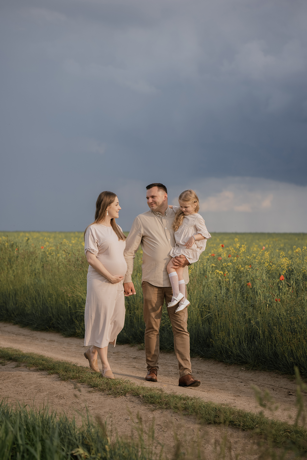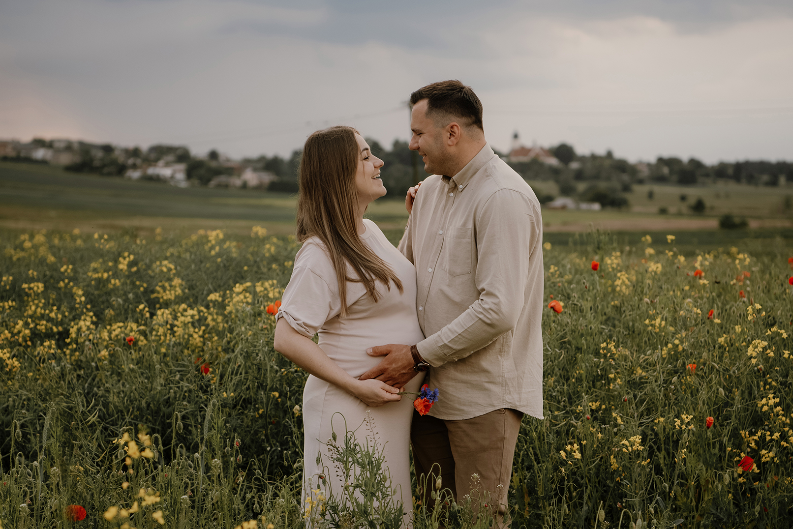FOTOGRAFIE: OLIWIA HOWANIEC Schwangerschaft fotoschooting unter stürmischem Himmel zwischen Mohnblumen und Kornblumen > _____ > MAY2025 KONTAKT